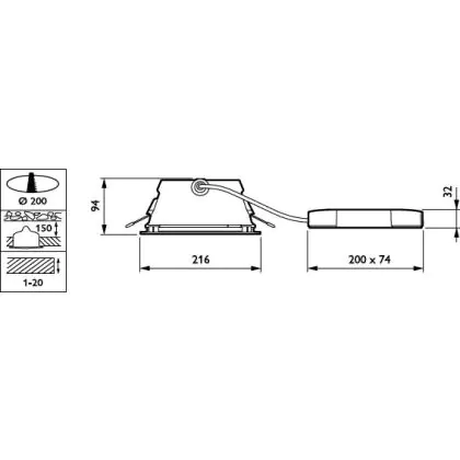 Der Ausschnitt einer Leuchte unterscheidet sich von den Abmessungen der Leuchte selbst und bezeichnet speziell die Grösse der Öffnung in der Decke, die für die sichere Montage der Lichtquelle benötigt wird.