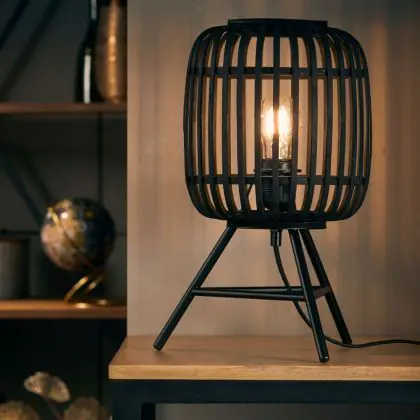 Brilliant Lampe De Chevet Boisrow Métal Bambou Noir Bois | Convient pour 1x E27
