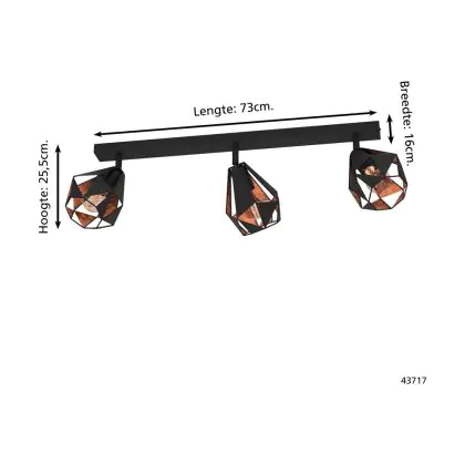 Eglo Plafonnier Carlton 7 Échantillon Noir Cuivre | IP20 - Convient pour 3x E27