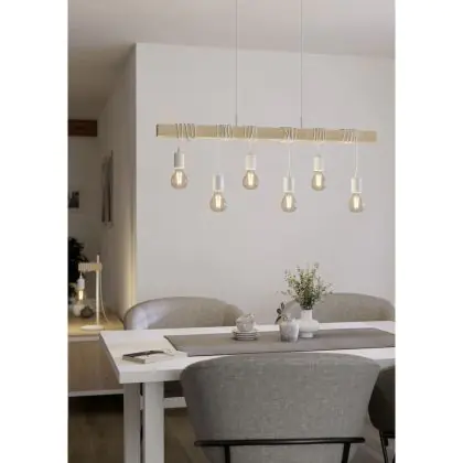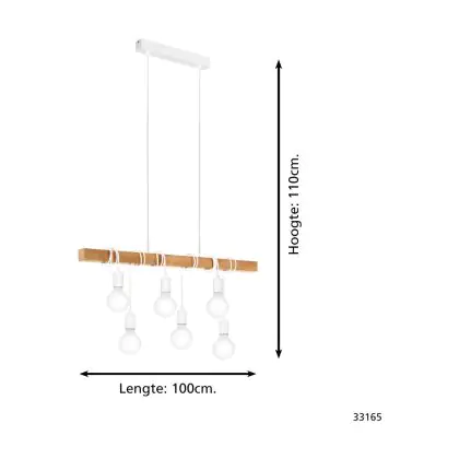 Eglo Suspension Luminaire Townshend Échantillon Blanc Bois | IP20 - Convient pour 6x E27