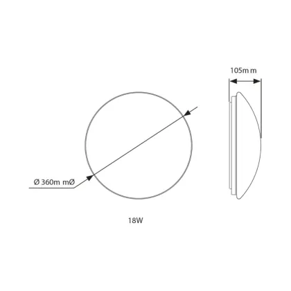 Hublot LED Blanc 18W 1561lm - 840 Blanc Froid | 360mm - IP44 - Éclairage De Secours 1 Heures