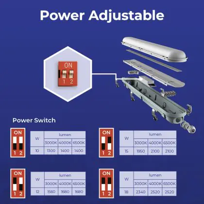 Description Lot 4x Réglette LED Étanche V3.0 10-18W 1300-2520lm - 830-865 CCT | 60cm - Câblage Traversant (5x2.5mm2)